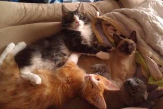 Prairieridge Milo and Prairieridge Tallulah Photos courtesy: Jackie Tallulah and Milo with new family members; four month old Main Coon kittens